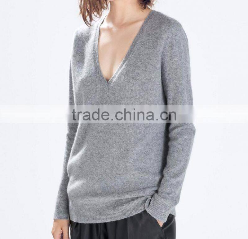 2017 Fall Women Gray Deep V-neck Cashmere Jumper