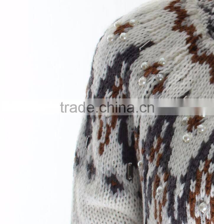 2017 Women Casual Bead Geometric Knit Christmas Sweater Dress