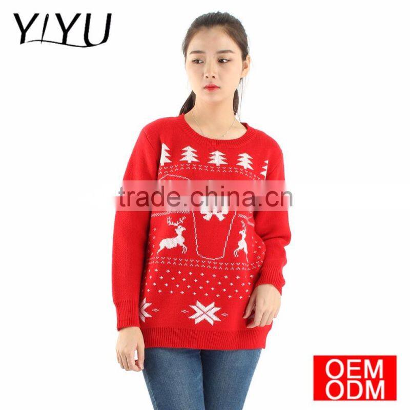 Custom Winter Casual Ladies Merry Jacquard Knitted Pattern Sweater for Christmas