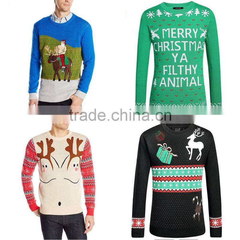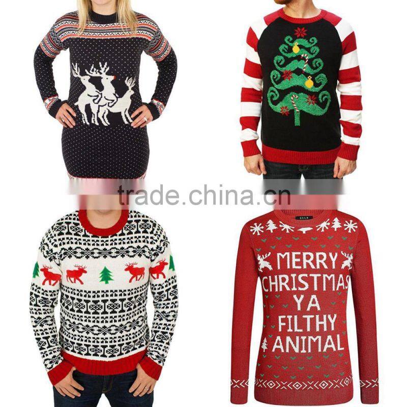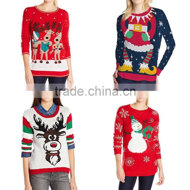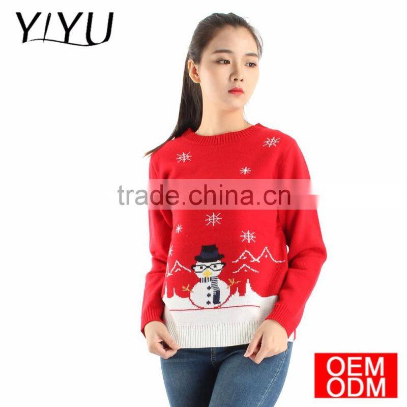 2017 Christmas Pullover Fashion Winter Jacquard Plain Knit Pattern Christmas Jumper Sweater for Woman