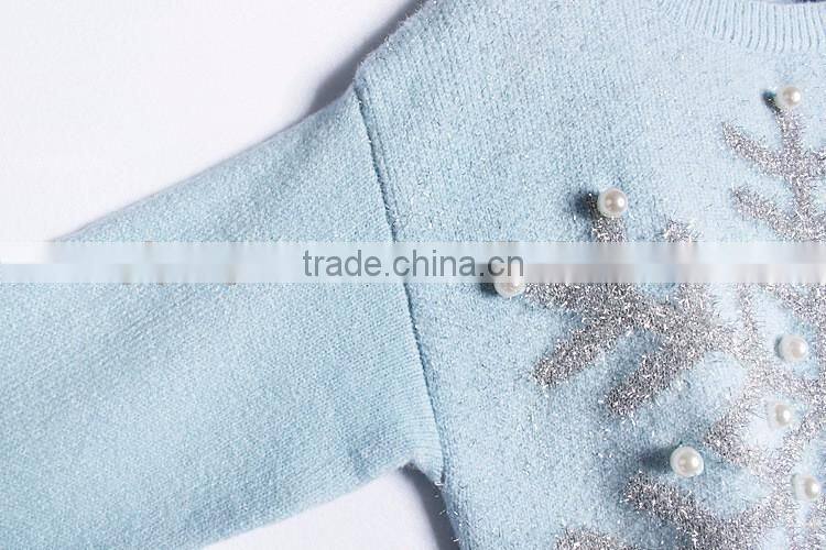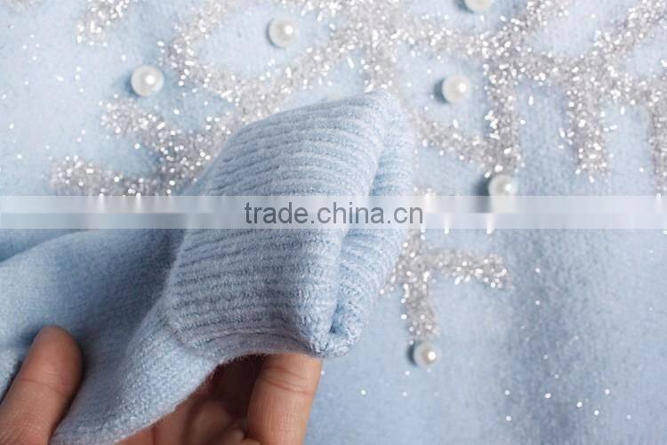 Women Pink Sweater Snowflake Pattern Christmas Pullover