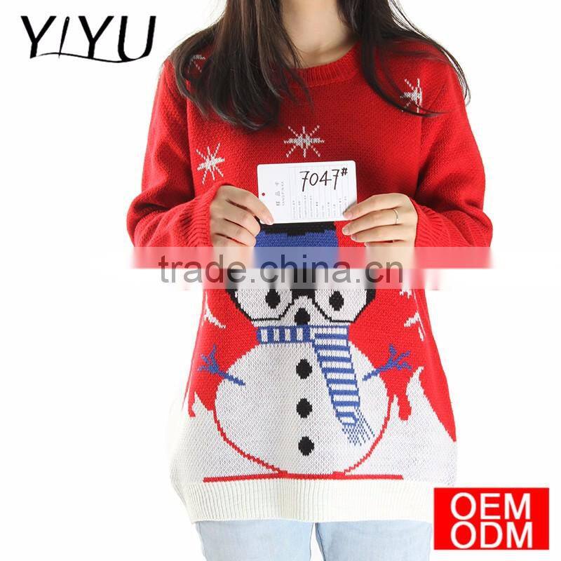 Custom Women Plus Size Jacquard Snowman Knitting Patterns Christmas Sweater