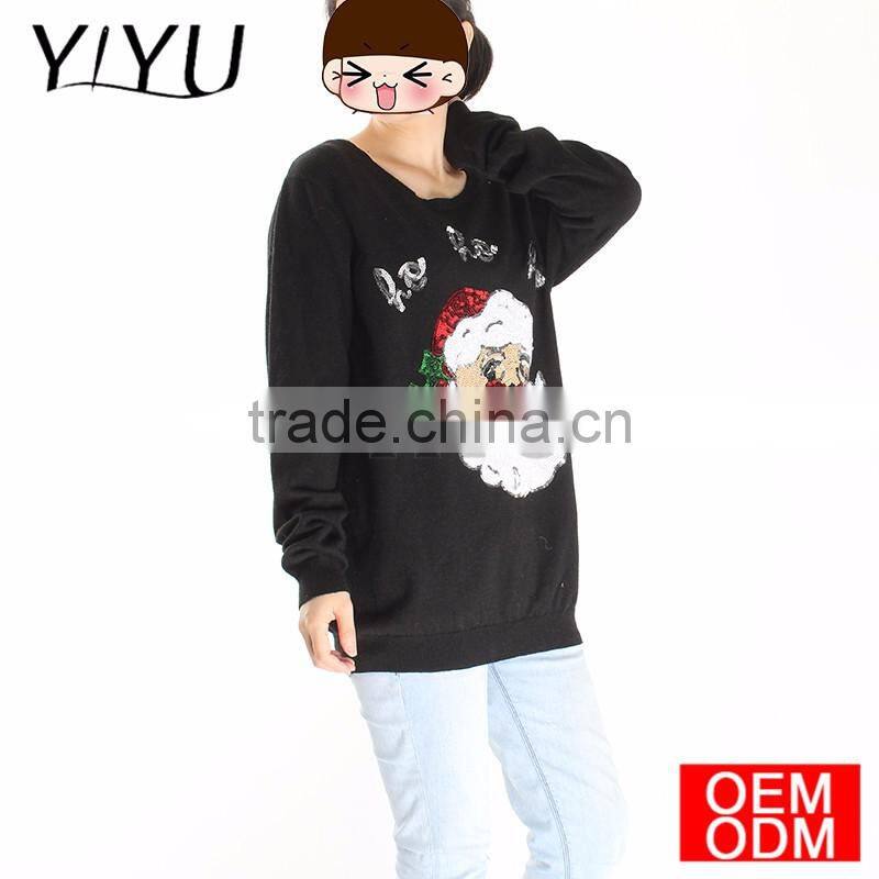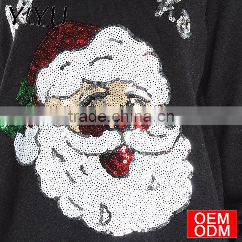 OEM Factory Price Women Sequins Santa Knit Christmas Pullover Sweater