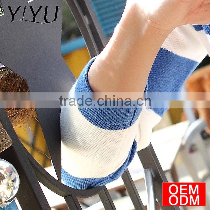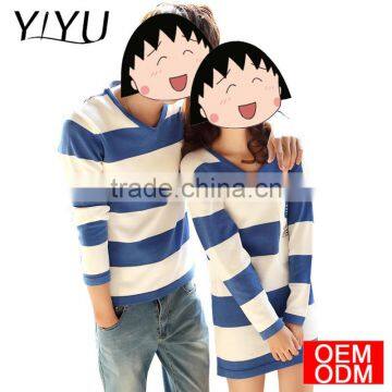 New Arrival Winter V-neck Blue White Stripe Knitted Couple Sweater