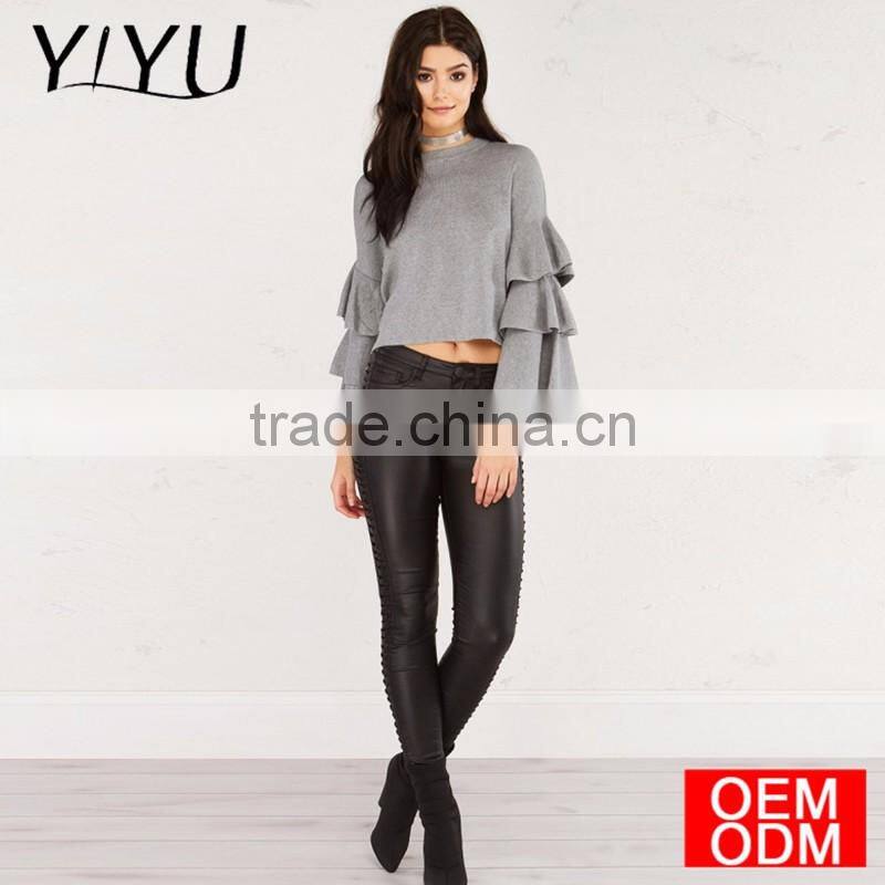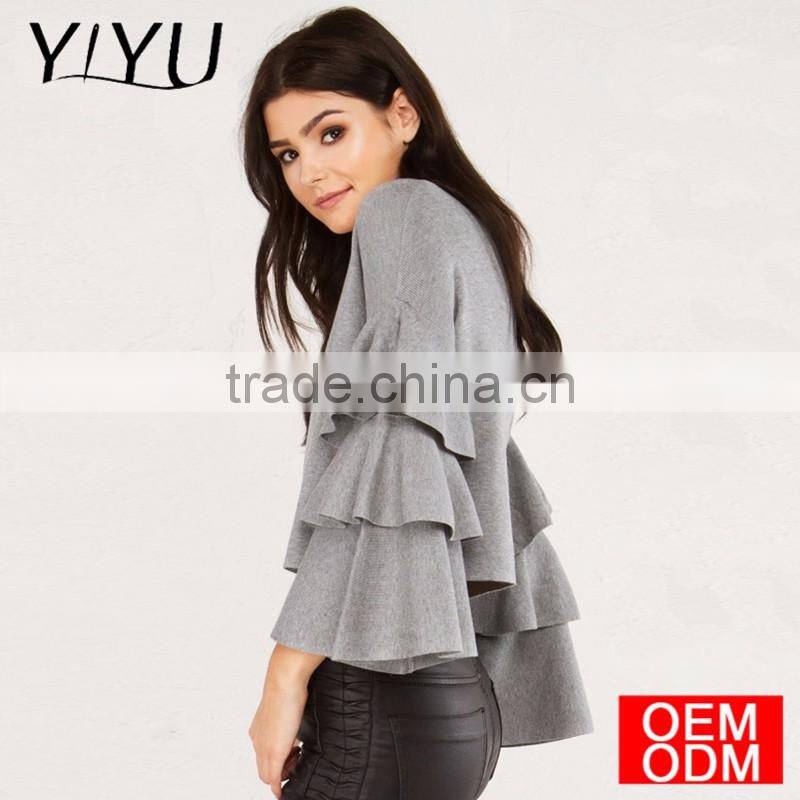 2017 Fashion Ruffles Sweater Women Casual Butterfly Sleeve Solid Gray Pullovers Preppy Cute Loose Winter Sweaters