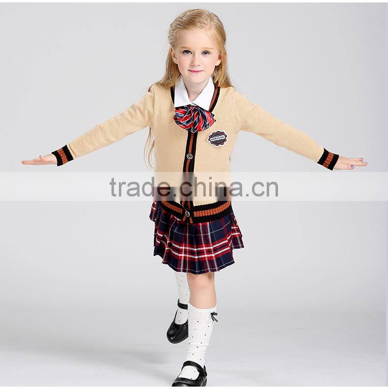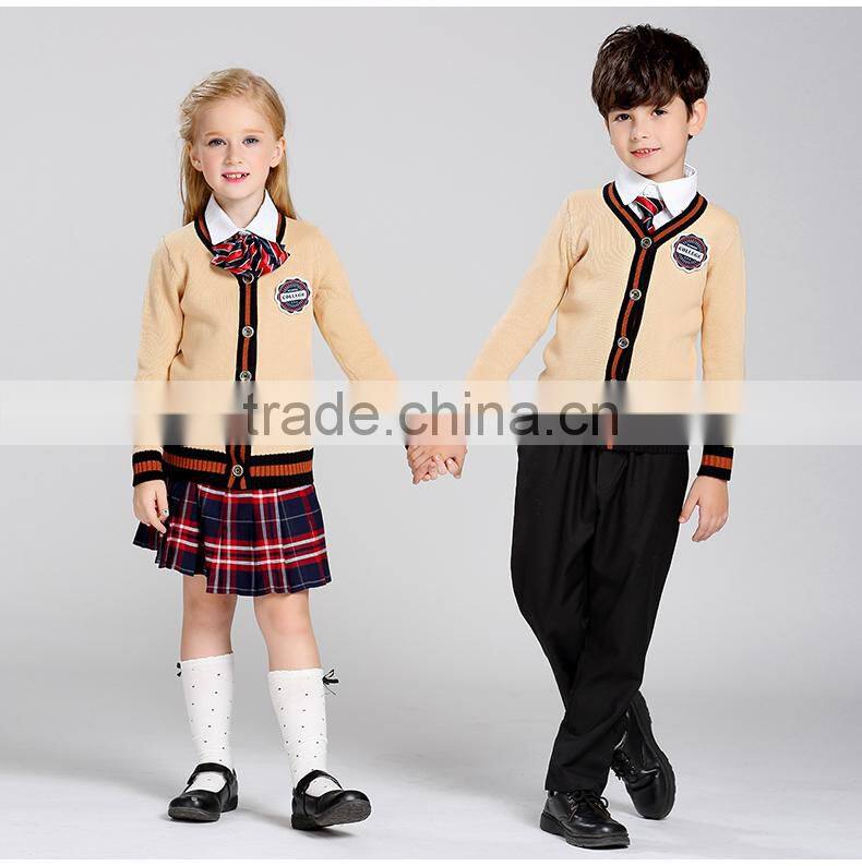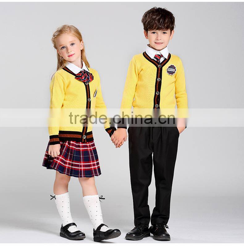 Custom Kindergarten School Uniform Long Sleeve Solid Knit Sweater Cardigan