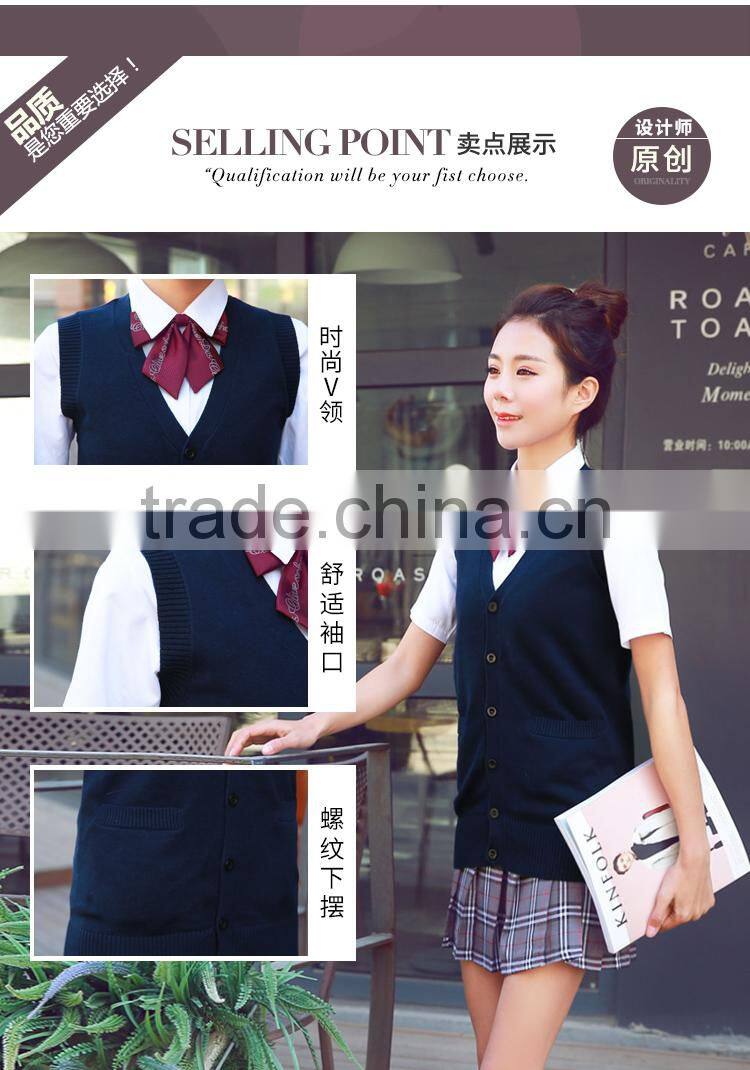 Trend Girl Dark Blue School Uniform Cardigan Vests for High School Students