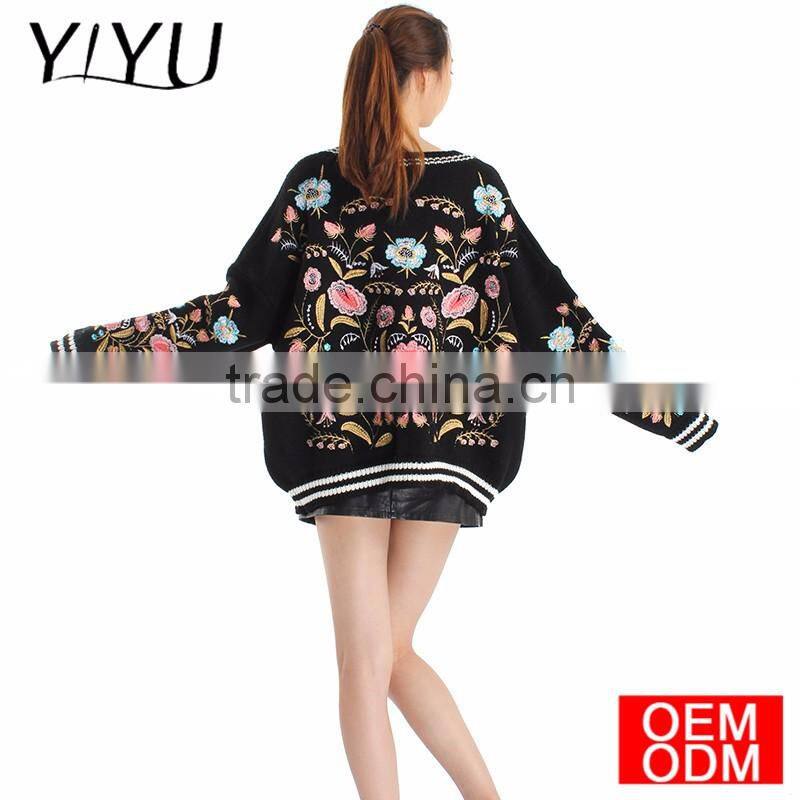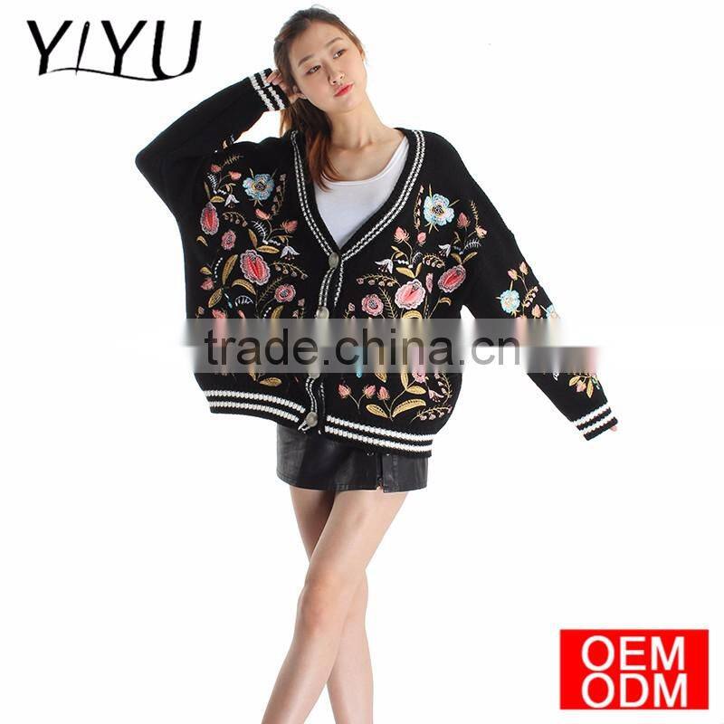 Casual Loose Flower Embroidery Knit School Uniform Cardigans for Students