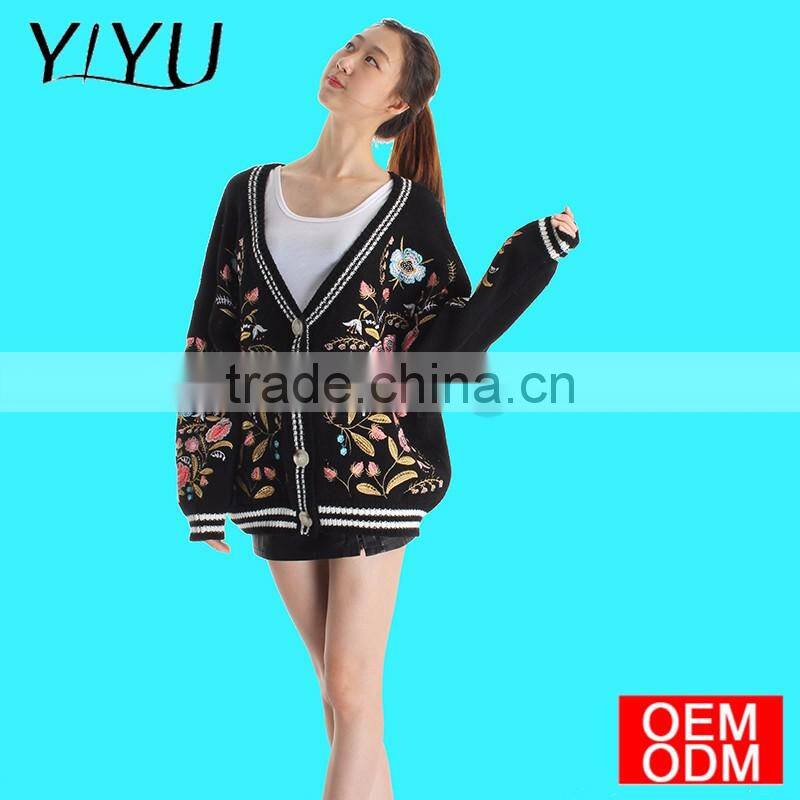 Flower Embroidery girl school uniform cardigan loose V-neck warm sweater
