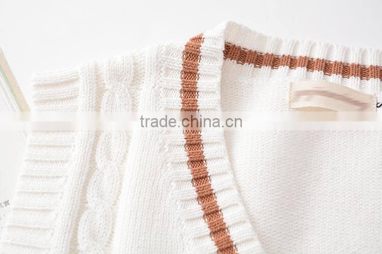 Customized School Uniform 100% Cotton White Cable Knit Vest Sweater