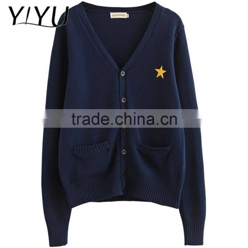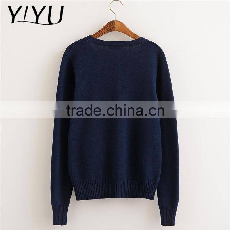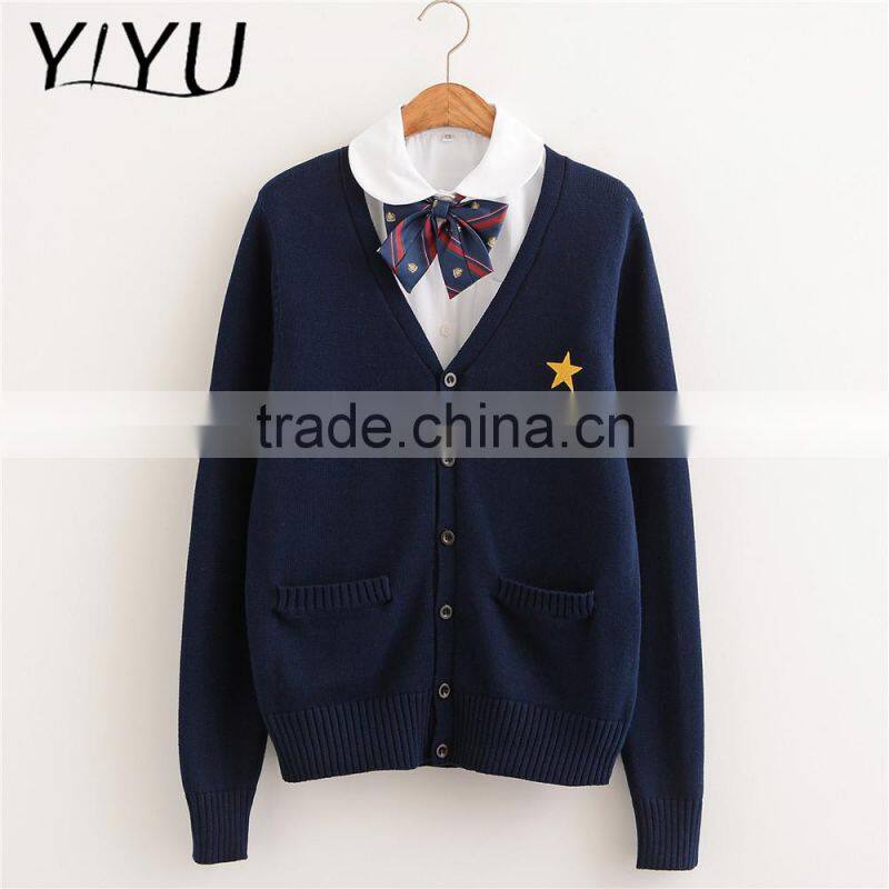 Custom Hot Sale Men Dark Blue Thick High School Uniform Cardigan Sweater