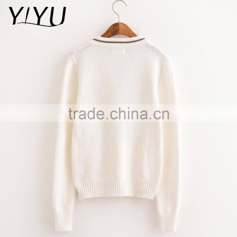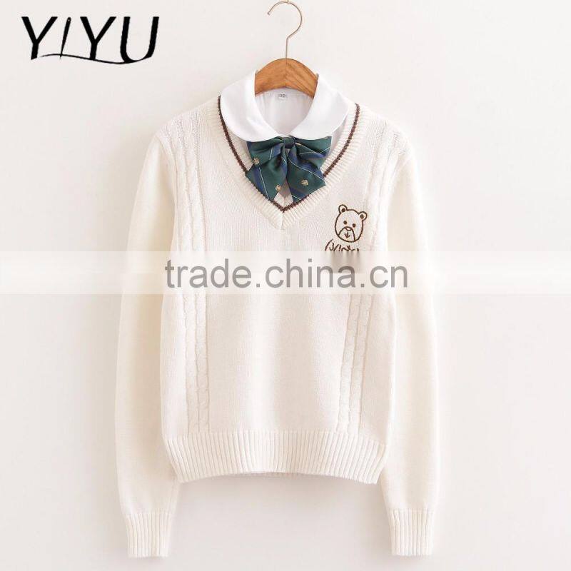Korea Style Girl White Sweet V-neck High School Uniform Pullover Sweater