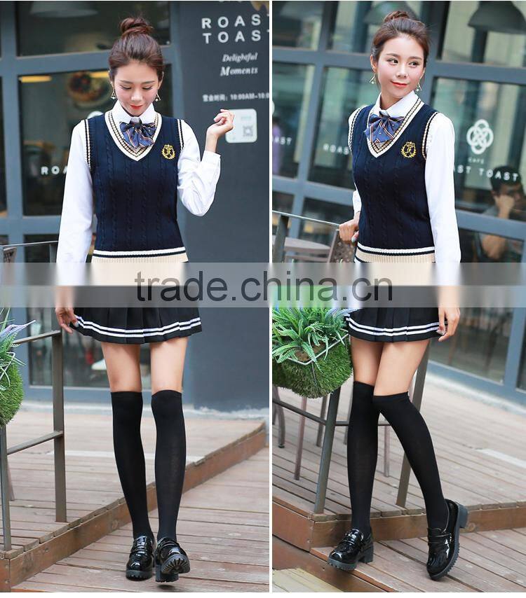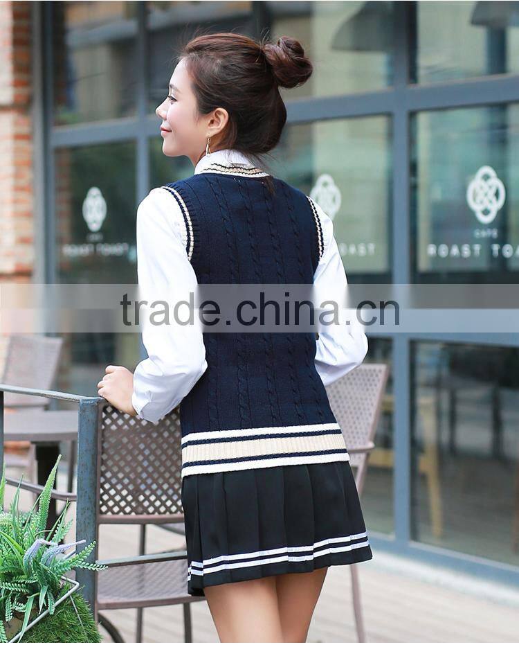 New Arrival Girl White Stripe V-neck High School Uniform Knit Vest Sweater