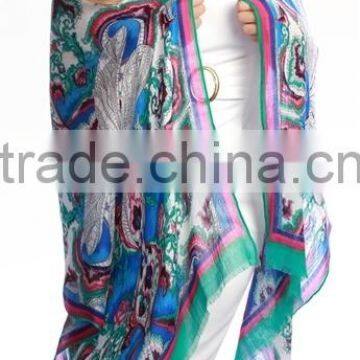 Hand wash80" by 28"20% Silk and 80% RayonFeatures:Gorgeous dramatic print in blues, white, pinks and emerald green. The Dragonfly Scarf adds sophistication to your resort wear collection.