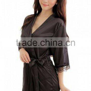 Ice Silk Robe Sexy Pyjamas Lingerie Sleepwear (Black)