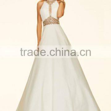A-line High Neck Beading Stones Satin Prom Dresses 2016 photo-1