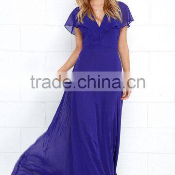 One look at the Elegant Arrival Royal Blue Maxi Dress and you can't help but fall head over heels! Dreamy chiffon short sleeves flutter atop a darted bodice (with lightly padded cups) and tie with slender straps at the open back. Skirt cascades from the fitted waist to a full, maxi length.