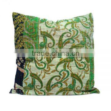 Home > Light Industry & Daily Use > Bedding > Cushion Cover > Vintage Kantha Cushion Cover Green