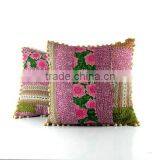 Reversible Vintage Kantha Cushion Cover With Pom Poms Latest