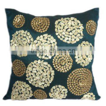 Home > Light Industry & Daily Use > Bedding > Cushion Cover > Mother of Pearl Embroidery Pillows Embllished Pillows Teal Embroidery Pillow Pearl Embroidery Pillows Beaded Teal Gold Pillows