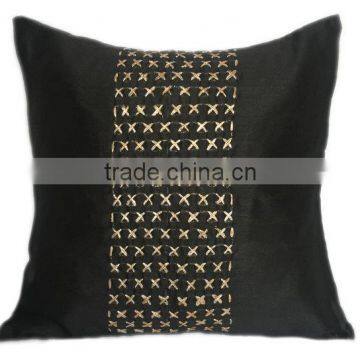 This Black Gold pillow cover is made on art silk pillow with cross stitch pattern embroidery done using gold and white ribbon.