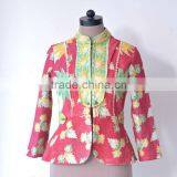Hand Crafted Kantha Jacket in Beautiful Vintage Color Print ~ Large