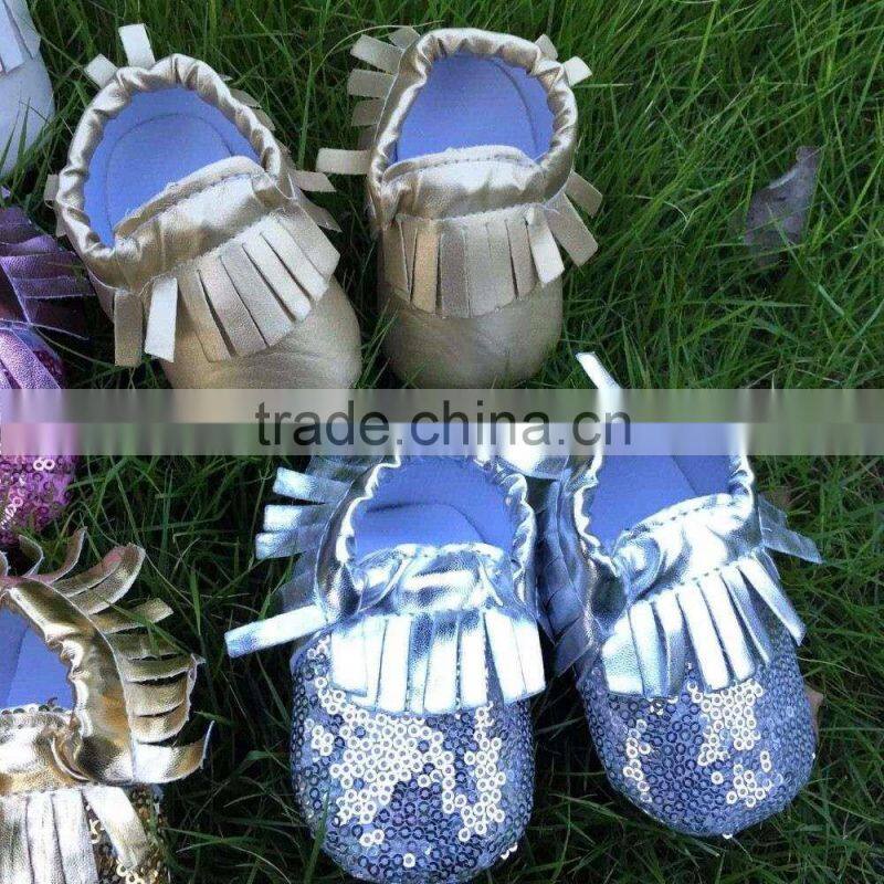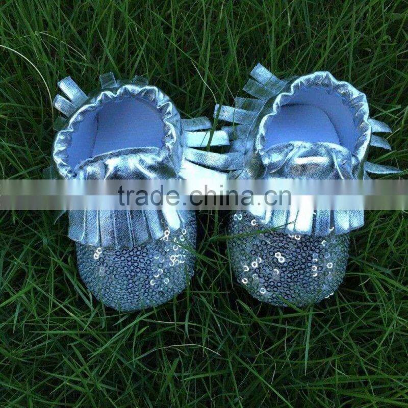hot sell baby girl Sequin leather Moccasins wholesale baby moccasins shoes Silver Toddler Moccasins baby shoes casual kids shoes