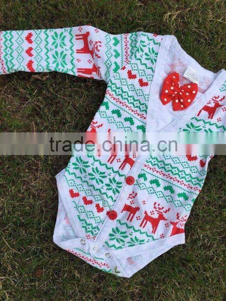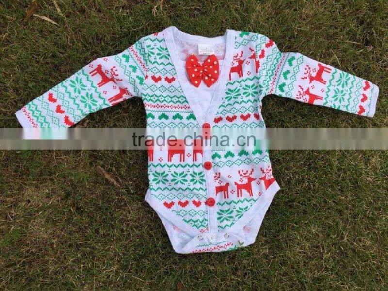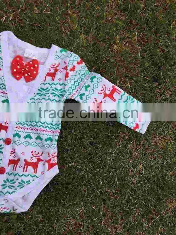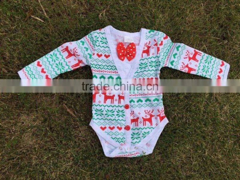 Christmas Baby Cardigans for Boys Baby Clothes Christmas Romper Long Sleeve Elk Reindeer Red Bowknot Romper Hot Sale Baby Romper