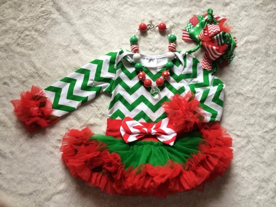 2014 Baby Christmas Tree Rompers With Tutu Dress Long Sleeve Chistmas Romper With Chunky Necklace Set