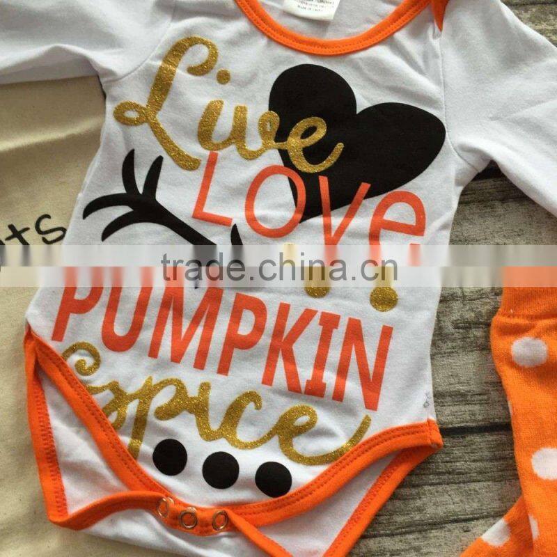 infant baby girls boutique clothing sets toddler Halloween outfits live love pumpkin romper infant toddler girls romper