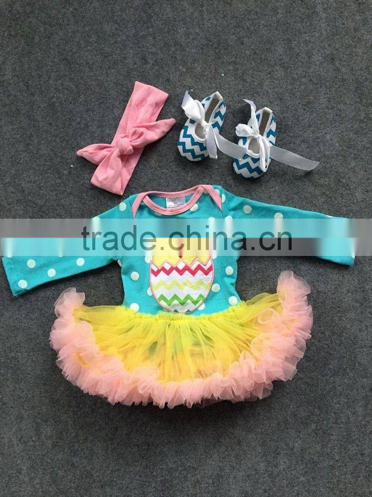 2016 lace tutu arrival full strock baby romper girls Chick Easter dress clothes long sleeve sets with matching bow and boots