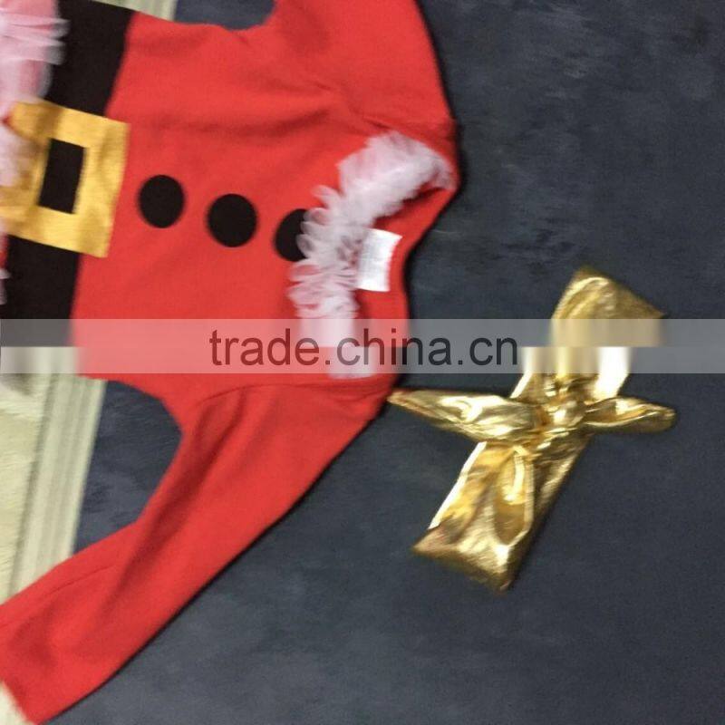 Christmas dresses baby girls Hot sale Baby Kids Girls cartoon romper tutu dresses child clothes with golden headband set