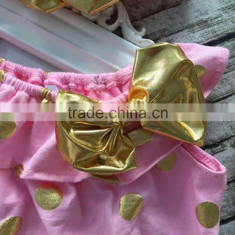 New design baby girls clothes toddler romper pink gold polka dot romper with headband