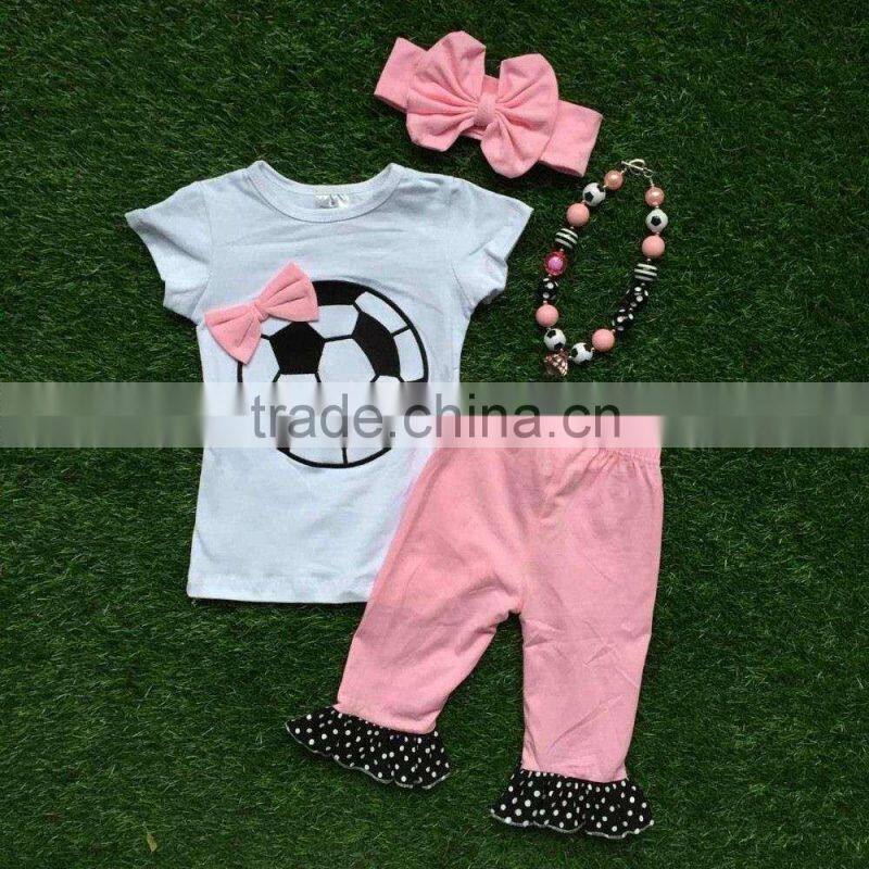 Baby Girls Summer Design Girls Boutique Clothes Girls Football Outfits Short Sleeve Ruffle Capri Sets With Accessories