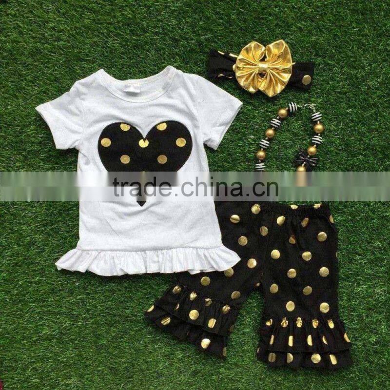 baby girls boutique clothing girls heart outfits children short sleeve summer outfits ruffle polka dot shorts with accessories