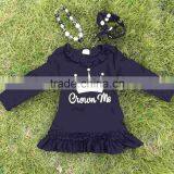 Black 2-7t FALL/Winter Kids OUTFITS Crown Gold Dress Girls Hot Sell Cute Clothes Kids With Matching Headband