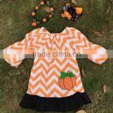 2015 New Arrival Kids Pumpkin Dress Kids Boutique Dress Girl Chervon Halloween Dress Ningbo Baby Kids Wear Firm