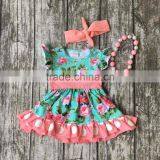 Baby Girls Summer Spring Dress Outfits Girls Floral Dress Girls Boutique Summer Dress With Matching Necklace and Headband