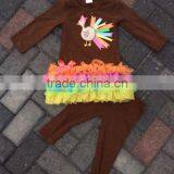 2014 New Baby Girls Thanks Giving Turkey Dress Pant Set With Matching Bow and Necklace Set