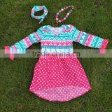 2015 New Girls High Low Dress Kids Aztec Blue Dress Hot Pink White Polka Dot Dress With Necklace and Headband