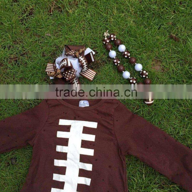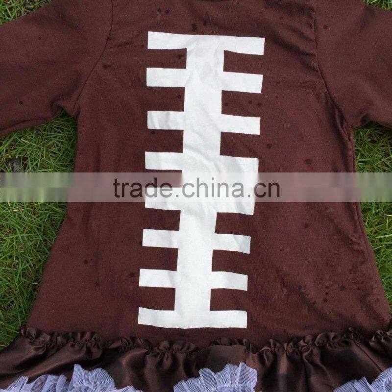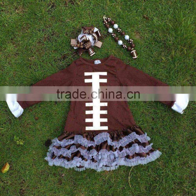 Football dress new design ruffle dress clothes 100%cotton cute children's kids clothes with matching necklace and headband