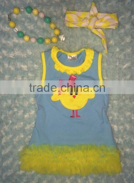 2015 new baby girls turquoise chick Easter dress with necklace and headband set