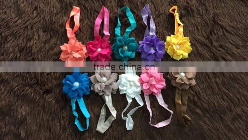 2015 New 10pcs per Pack 1 pc Each Color Shabby Flower Baby Girls Nylon Headband Set