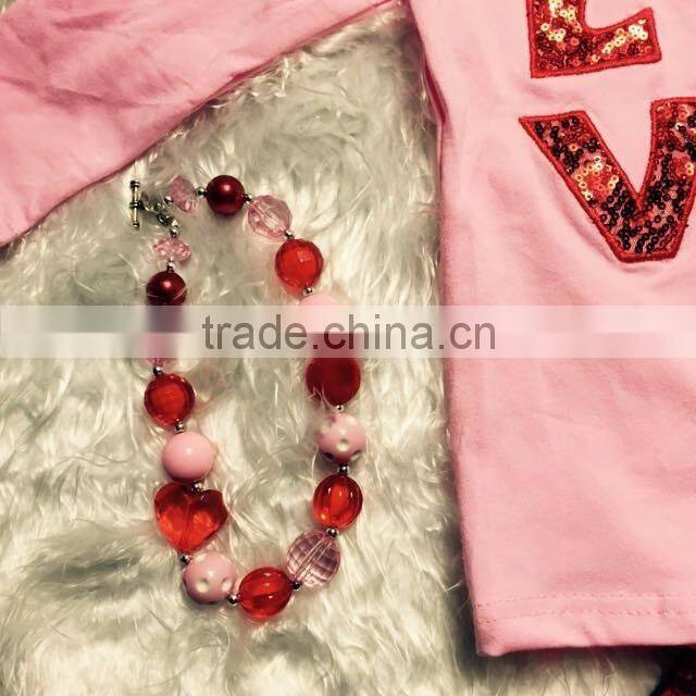 2.14 theme Valentine's day girls clothes Love spring heart outfits red sequins pants with matching necklace and bow set