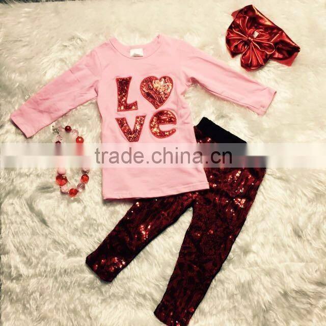 2016 Cute Toddler V-days Girls Baby Kids Valentine Clothes Heart Top Pant New Design Hot Sell Boutique Clothes Kids Sets