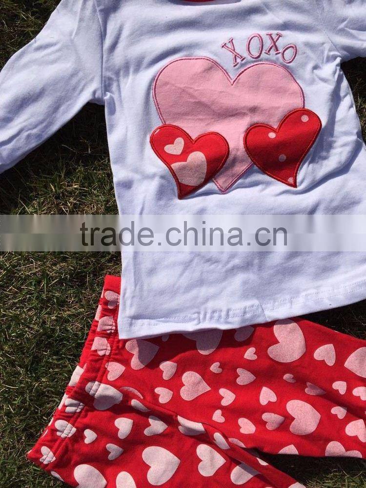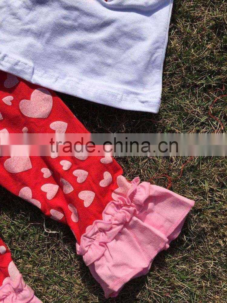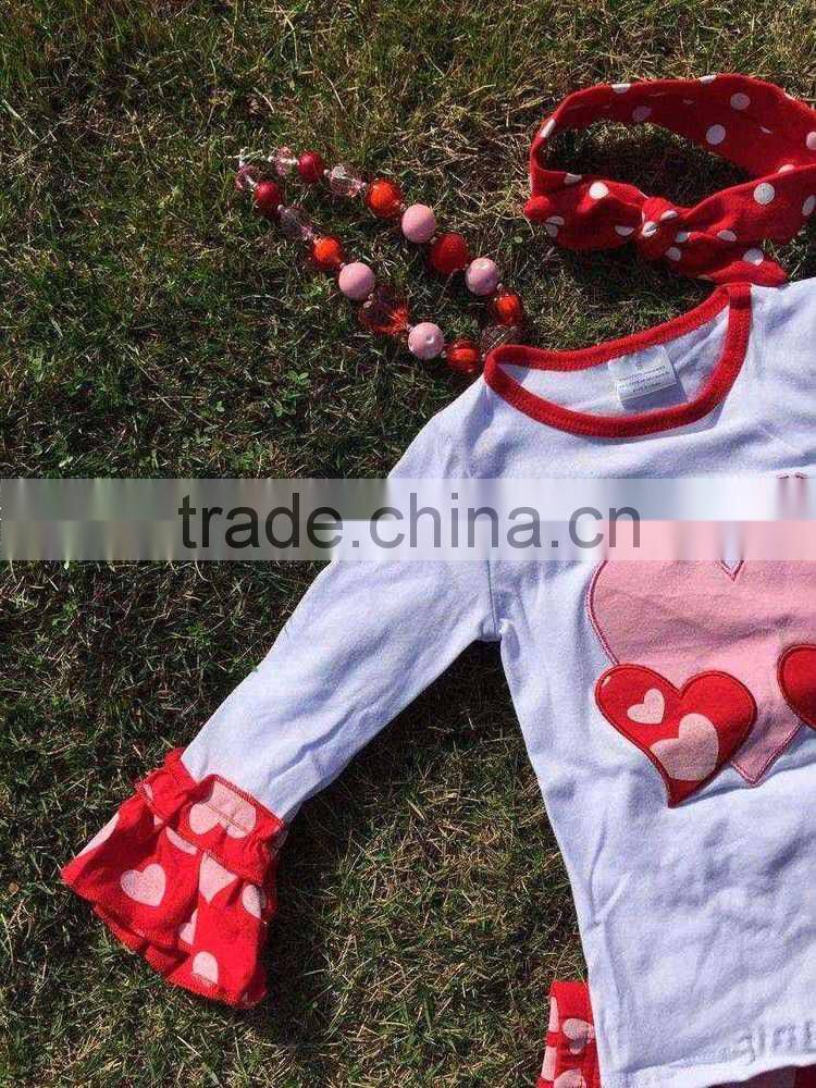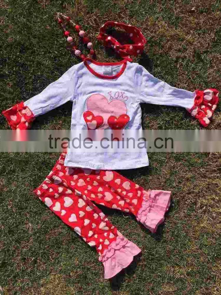 baby clothes Valentine outfit hot sell design kids boutique cute heart girls ruffle pant with necklace and headband set