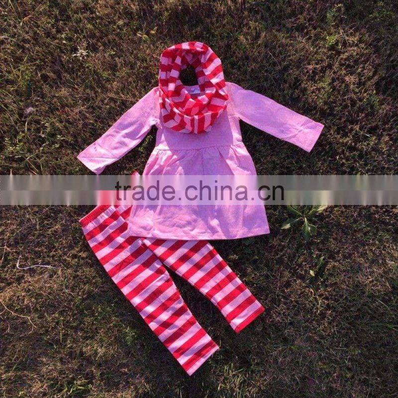 2016 new Valentine's day design girls Fashion clothes kids suit red stripes pant scarf set pink top baby kids wear set