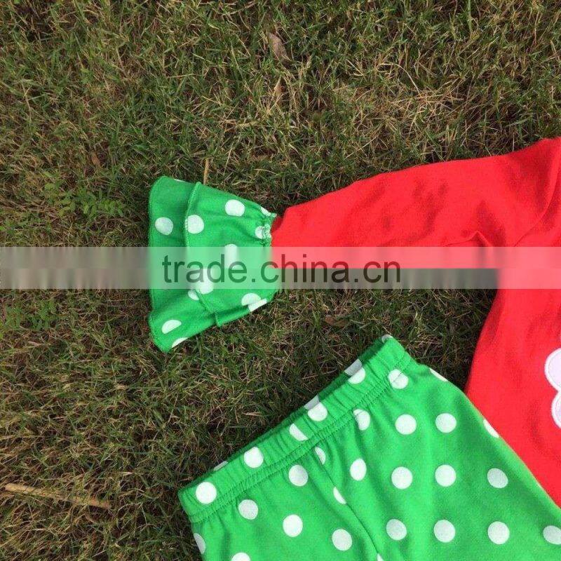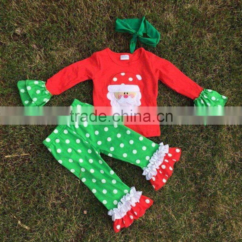 Fashion Christmas grils otufits baby kids wear Santa red top kids green white dot pants with mtaching headband set