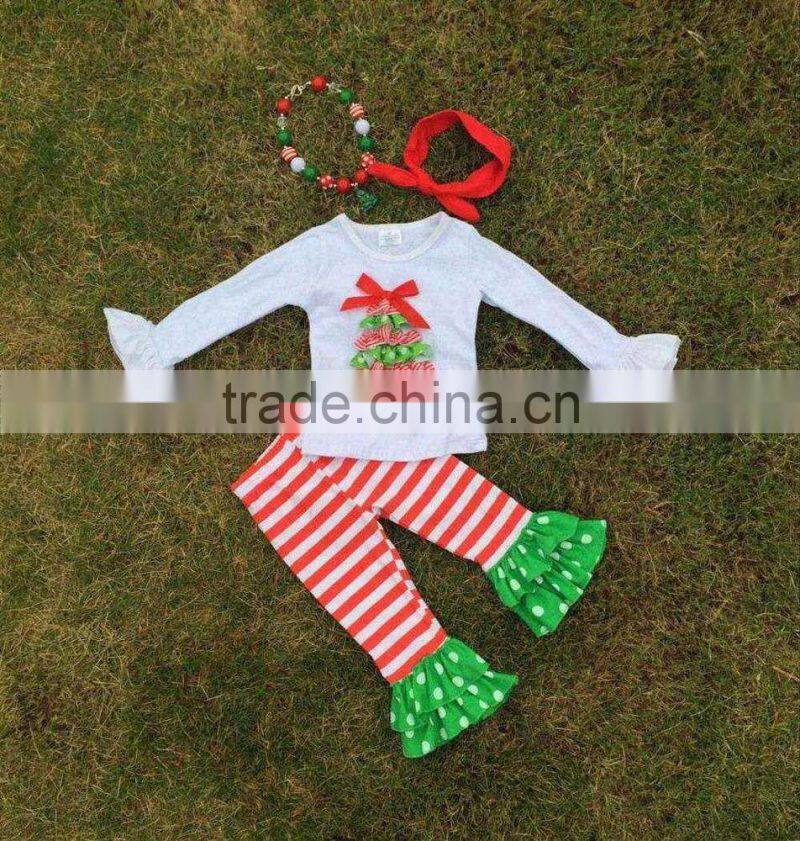 Christmas suit girls clothing baby kidswear Christmas tree X-mas clothes red stripes pant with necklace and headband set