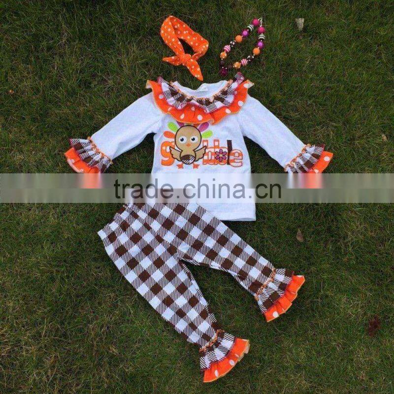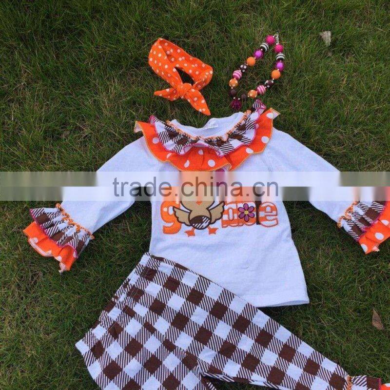 newest kids Fall clothes girls thanksgiving outfit girls thanksgiving pant sets kids long sleeve sets with necklace and headband